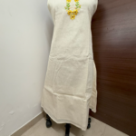 Off-white cotton one-piece with golden yellow floral embroidery – graceful, breathable, and perfect for daily elegance.